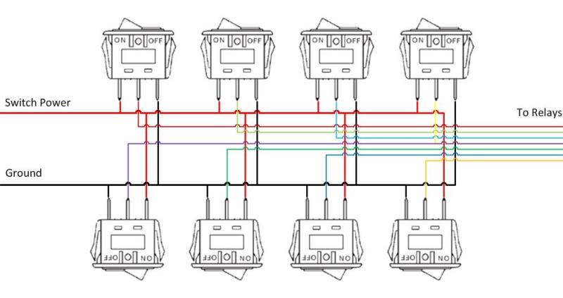 - Connect each of the colored wires from the relays to one of the switches. Make sure the switch you want to use for each accessory is connected to the correct relay under the hood. On most illuminated switches, this will be the middle terminal.